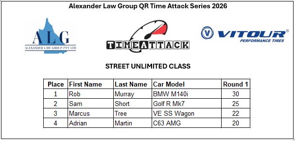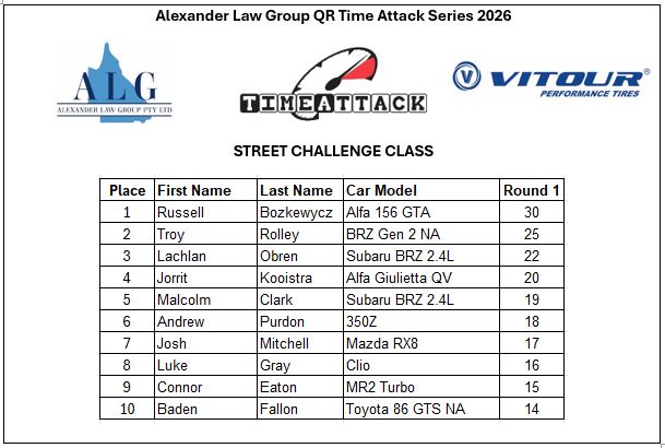 - Class ST-1: Street Challenge (N/A Under 4000cc, N/A Rotaries, Forced Induction Under 2000cc)