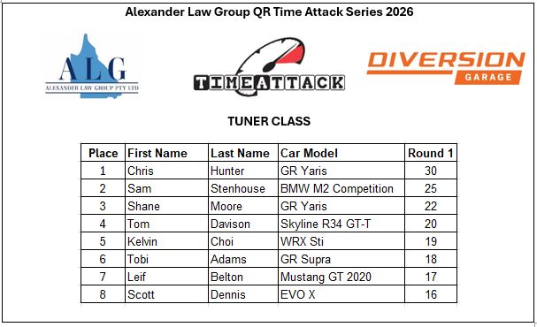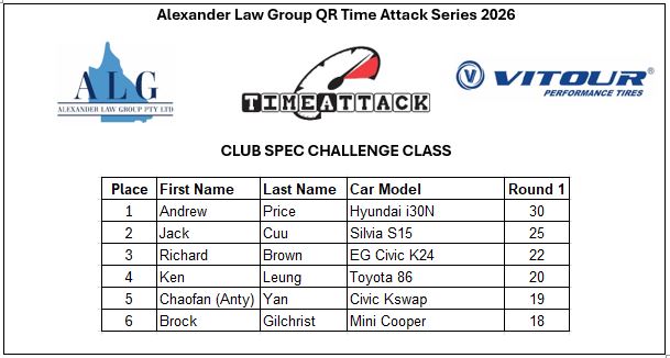 - Class CS-1: Club Spec Challenge (N/A Under 4000cc, N/A Rotaries, Forced Induction Under 2000cc)