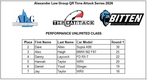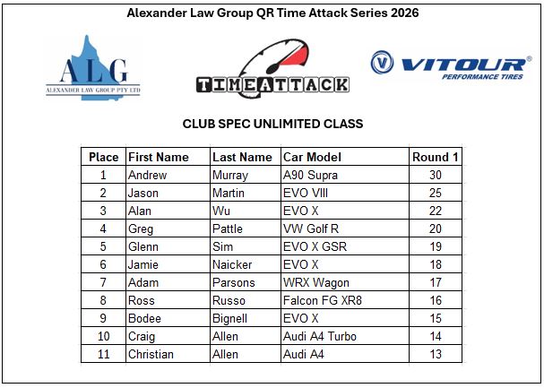 - Class CS-2: Club Spec Unlimited (AWD, Forced Induction from 2000cc, Forced Induction Rotaries, N/A from 4000cc)